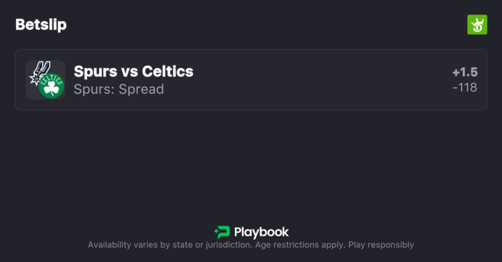 - Spurs vs Celtics pick: Spurs -1.5 (+100)