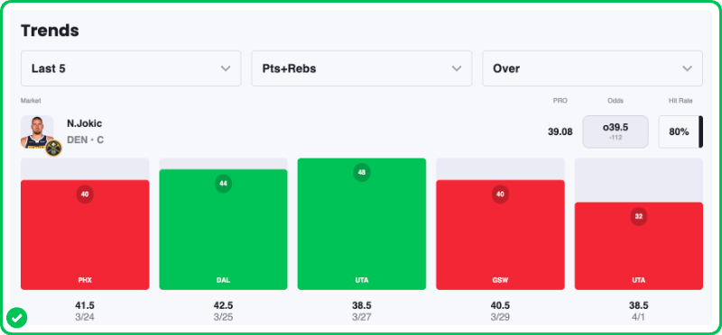 Pick: Nikola Jokic Over 40.5 Points & Rebounds (-112)