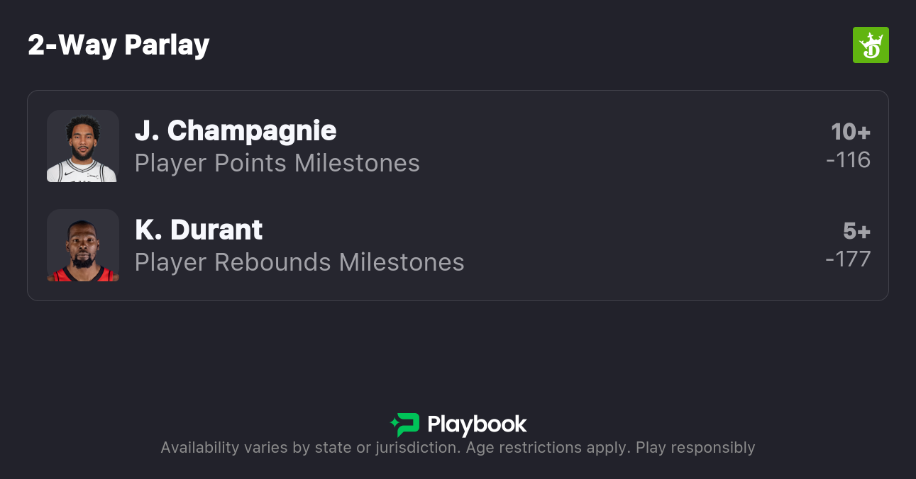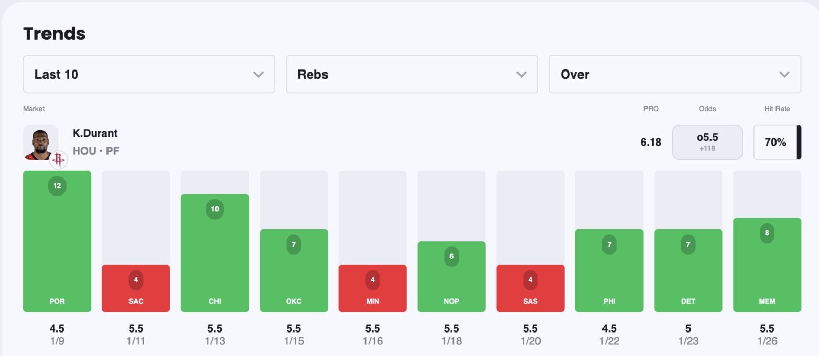 - Spurs vs Rockets picks: Julian Champagnie 10+ Points / Kevin Durant 5+ Rebounds