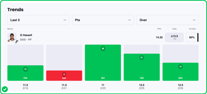 Devin Vassell Over 12.5 Points
