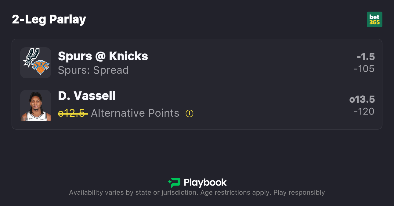 - Spurs vs Knicks pick: Spurs -1.5 (-110)