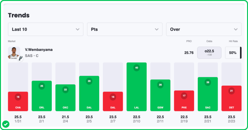 Wemby has averaged 24.9 points per game in February, and I love his matchup tonight.