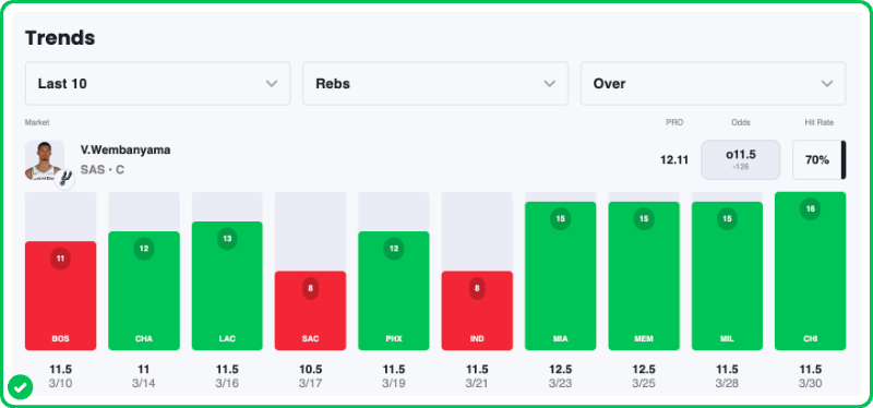 Pick: Victor Wembanyama 13+ Rebounds (+115)