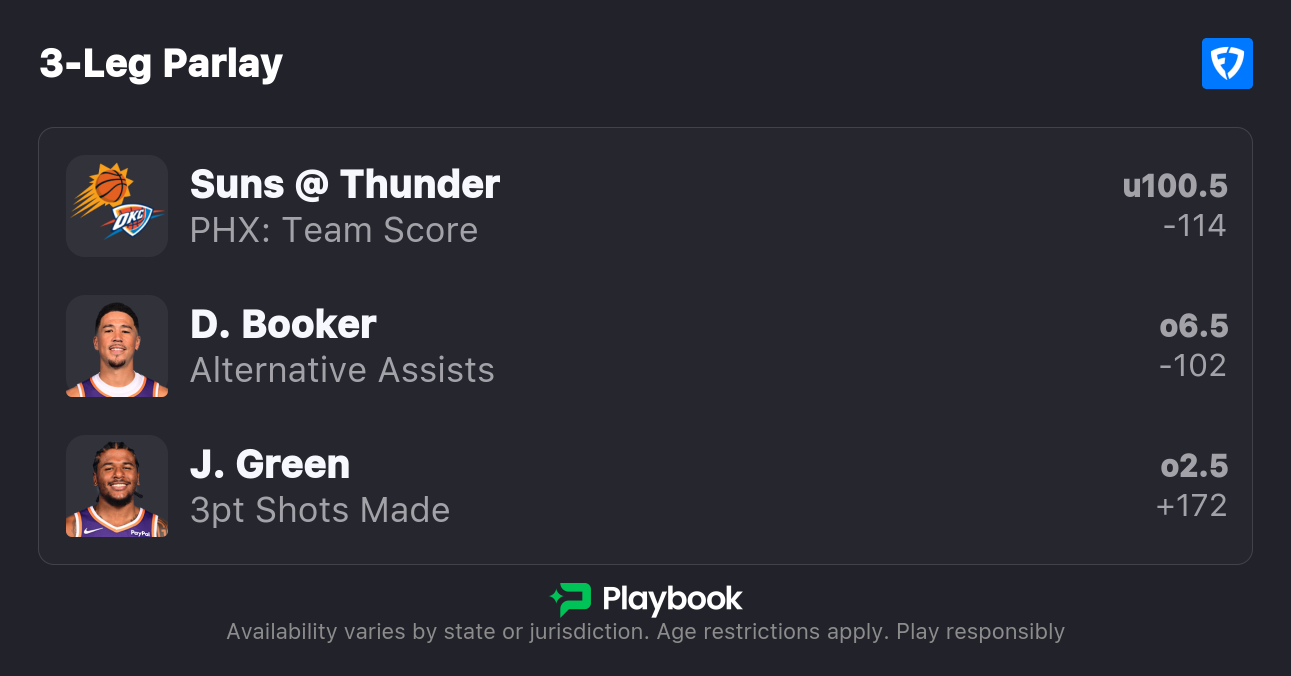 - Suns vs Thunder pick: Suns Team Total Under 100.5 (-105)