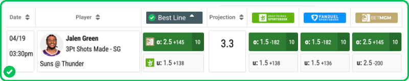 - Jalen Green Over 2.5 Three-Pointers Made (+140)