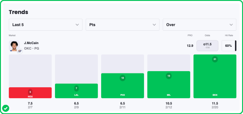McCain's scoring role has expanded in each game with his new team team and is coming off of three straight double-digit scoring games, bringing his points per game to 11.6 since joining Oklahoma City.