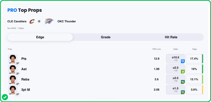 Continue below for our Thunder vs Cavaliers player prop pick for Sunday, February 22