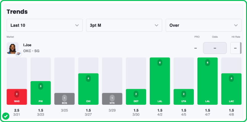 - Thunder vs Nuggets pick: Isaiah Joe Over 1.5 Three-Pointers Made