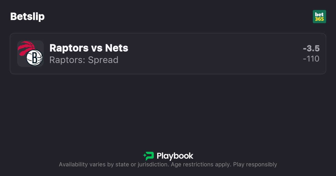My Nets vs Raptors best bet is on the Raptors to cover the spread, with the best price currently available at bet365. But as always, make sure to find the best odds by checking our live NBA odds page.