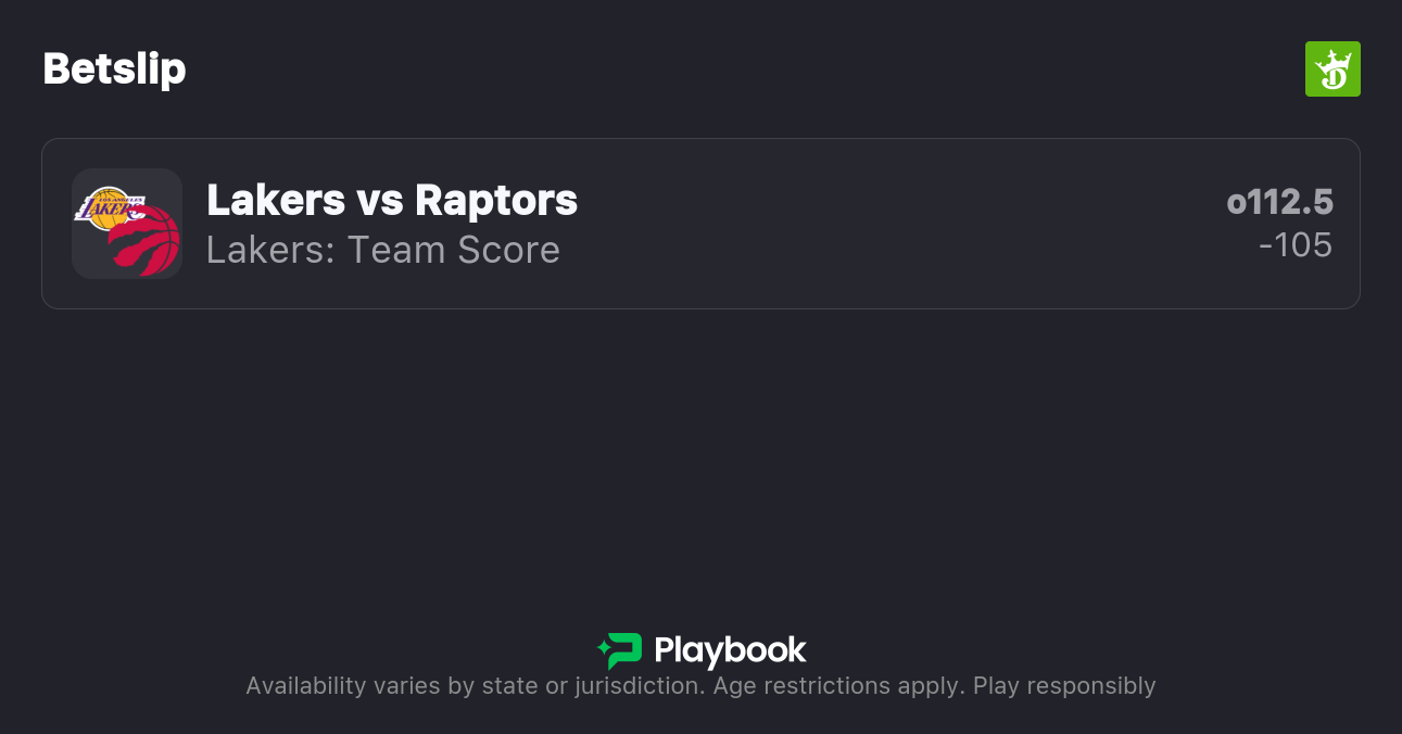 - Raptors vs Lakers pick: Lakers Team Total Over 112.5 (-105)