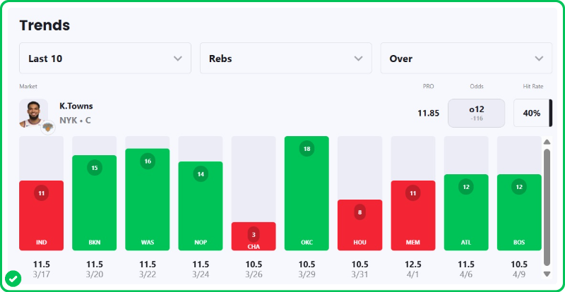 - Raptors vs Knicks pick: Karl-Anthony Towns Over 11.5 Rebounds (-130)