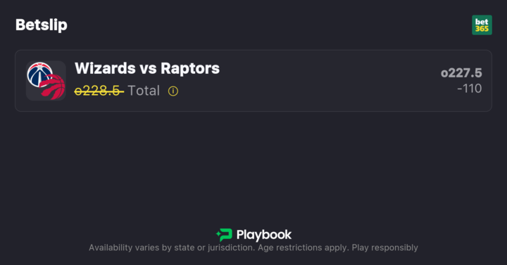 - Raptors vs Wizards pick: Over 226.5 (-110)