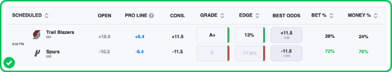 - Trail Blazers vs Spurs pick: Trail Blazers +10.5 (-105)