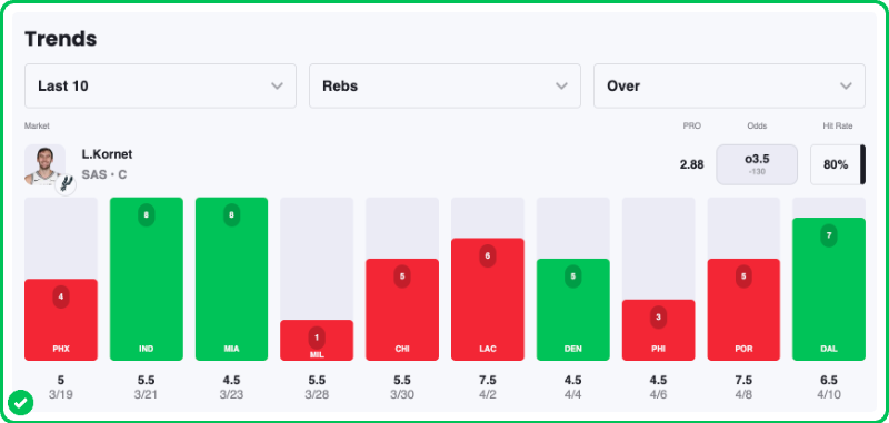 - Luke Kornet Over 3.5 Rebounds (-117)