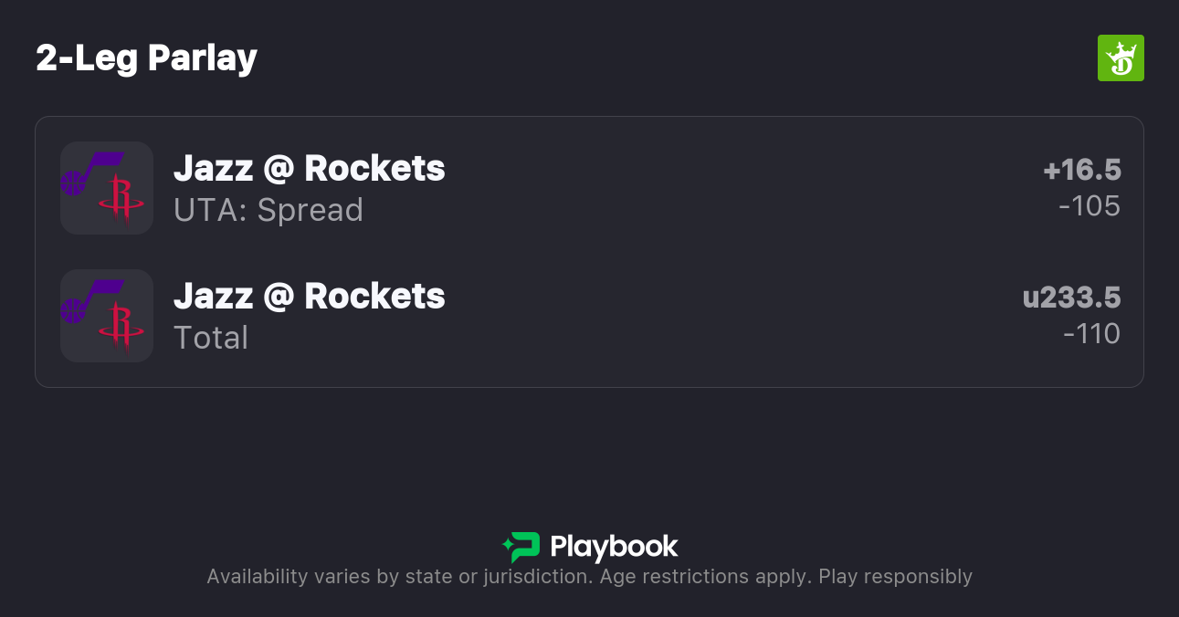 - Jazz vs Rockets picks: Jazz +16.5, Under 233.5