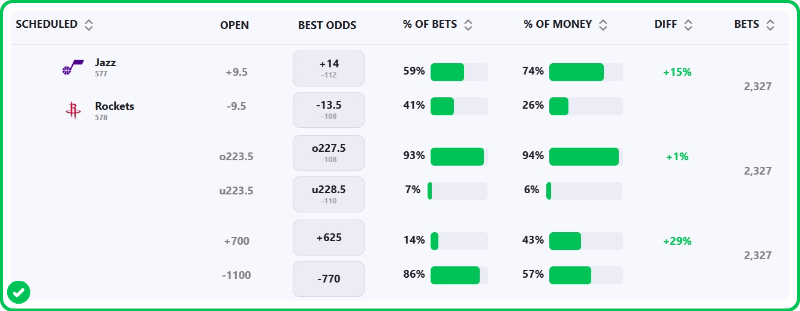 Jazz vs Rockets Odds