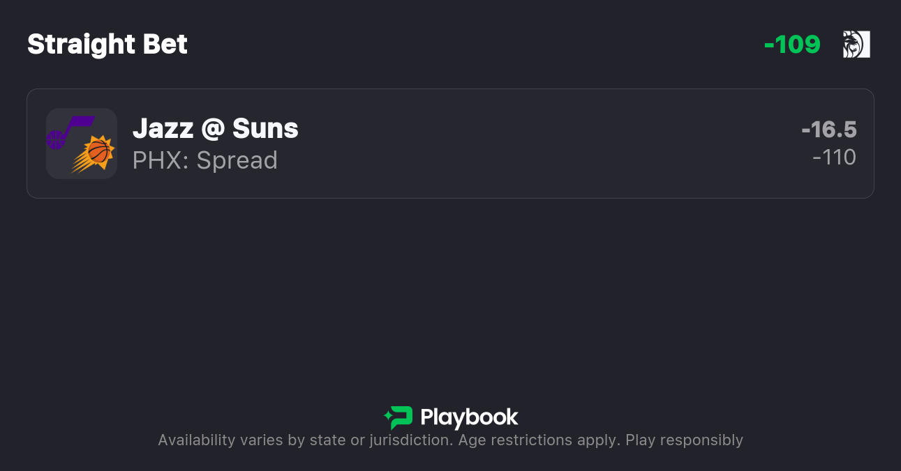 - Jazz vs Suns pick: Suns -16.5 (-110)