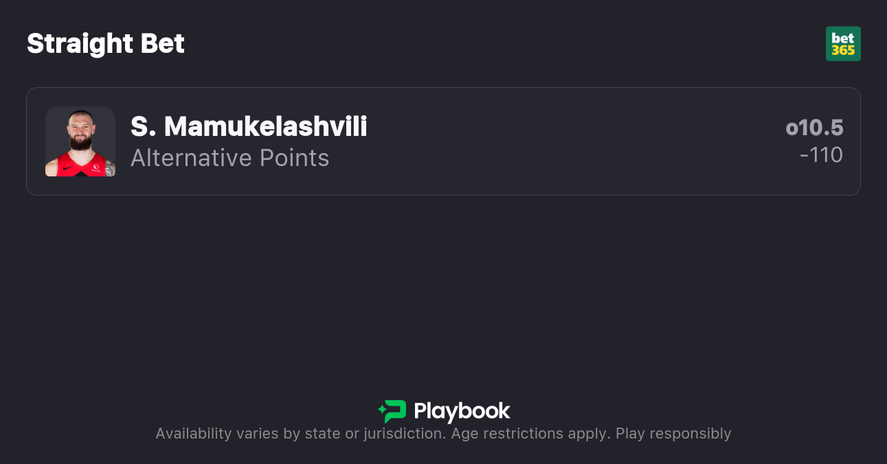 - Jazz vs Raptors pick: Sandro Mamukelashvili Over 10.5 Points (-110)