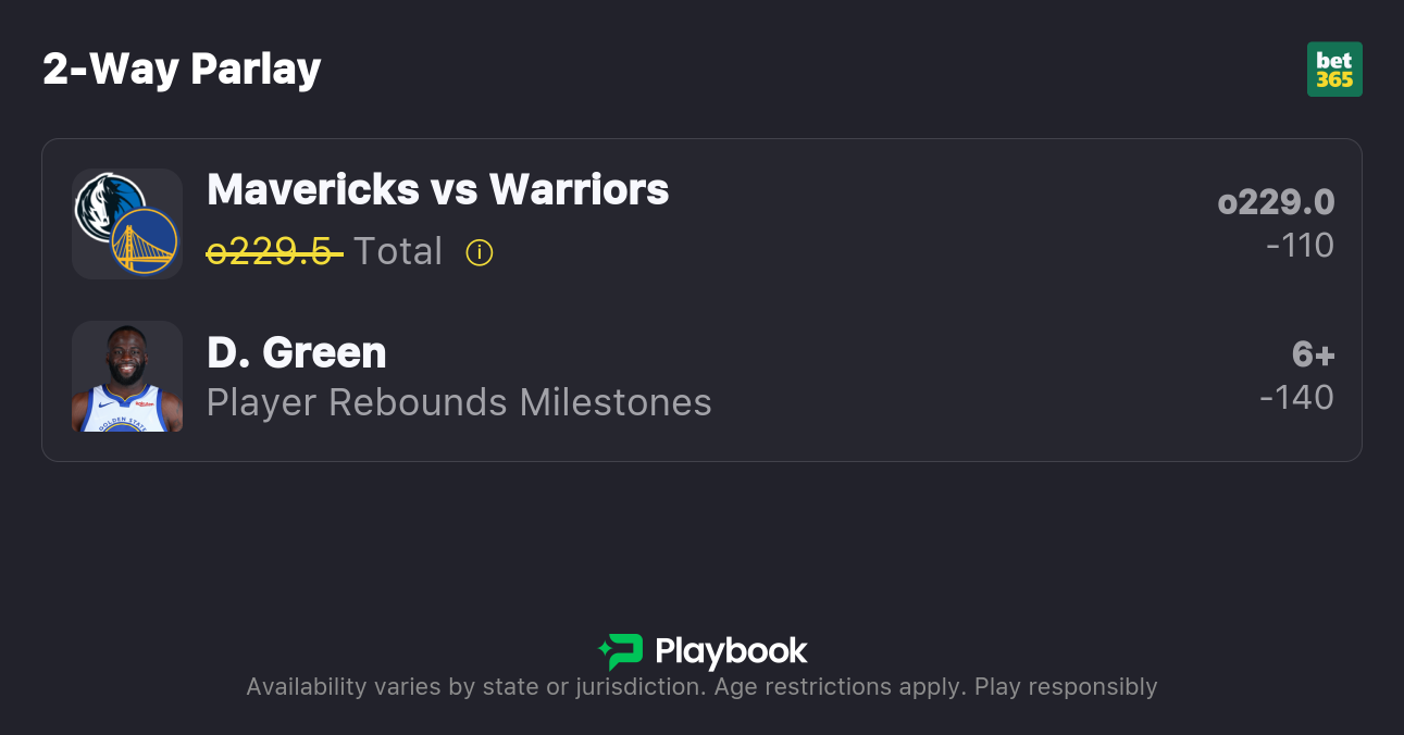 - Mavericks vs Warriors parlay picks: Over 229.5 / Draymond Green 6+ Rebounds