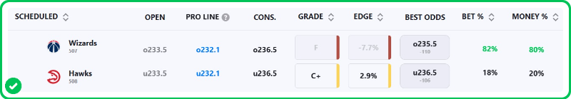- Wizards vs Hawks pick: Under 236.5 (-110)