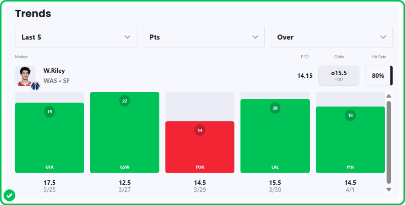 Pick: Will Riley Over 14.5 Points (-125, Fanatics)