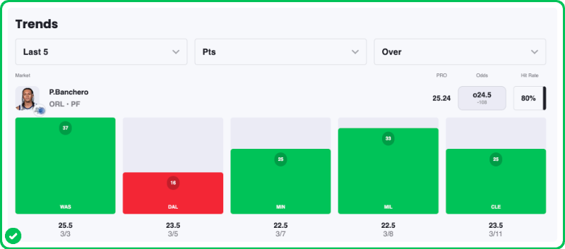 - Wizards vs Magic pick: Paolo Banchero Over 24.5 Points (-125)