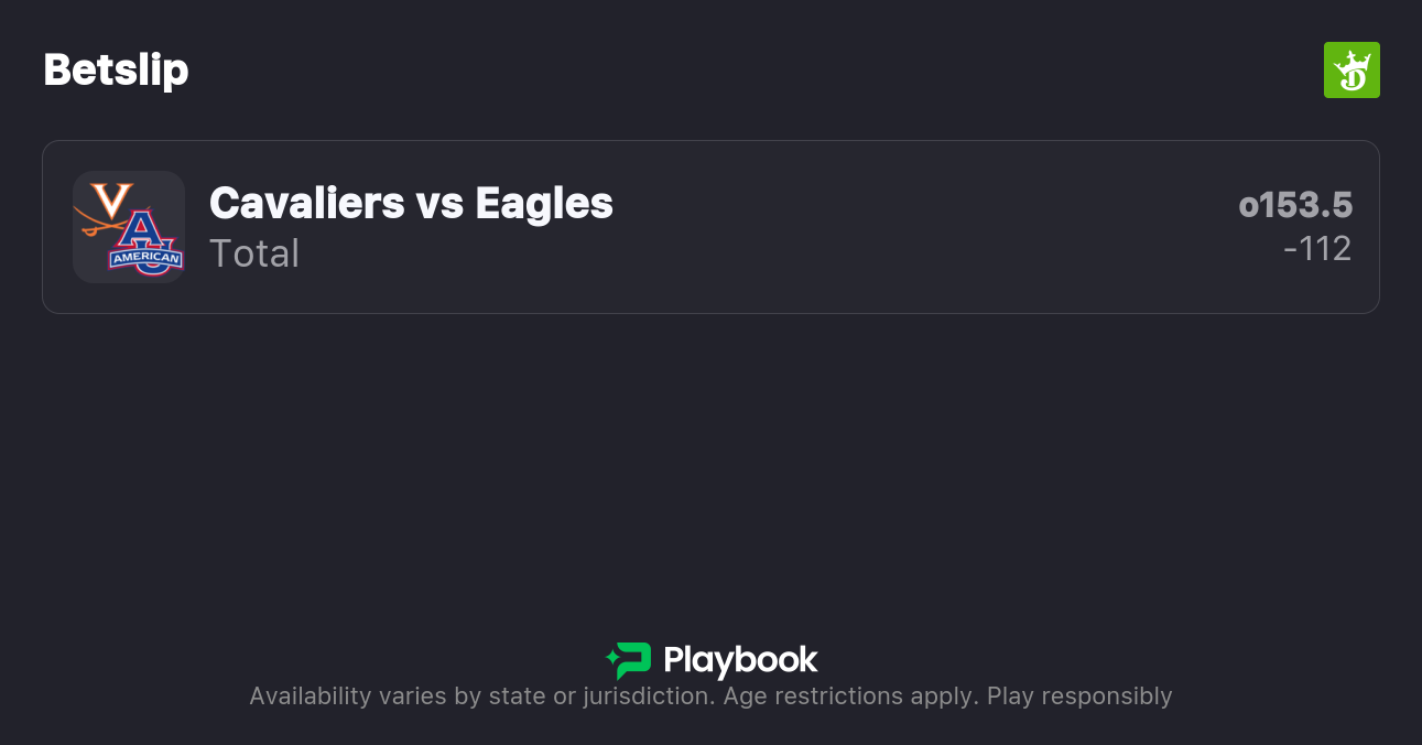 - American U vs Virginia over/under: 153.5 points