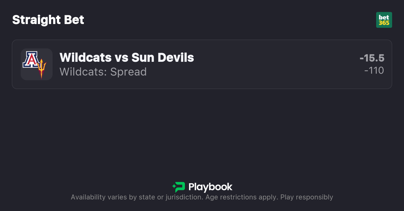 - Arizona vs Arizona State moneyline: Arizona -1700, Arizona State +950