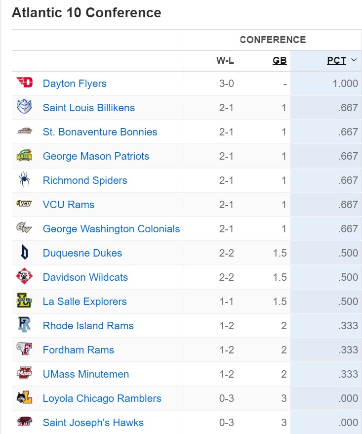 The Atlantic 10 has been in league play for a couple of weeks, making now a good time to check in on the standings, odds to win the conference and the surprises we have seen so far.