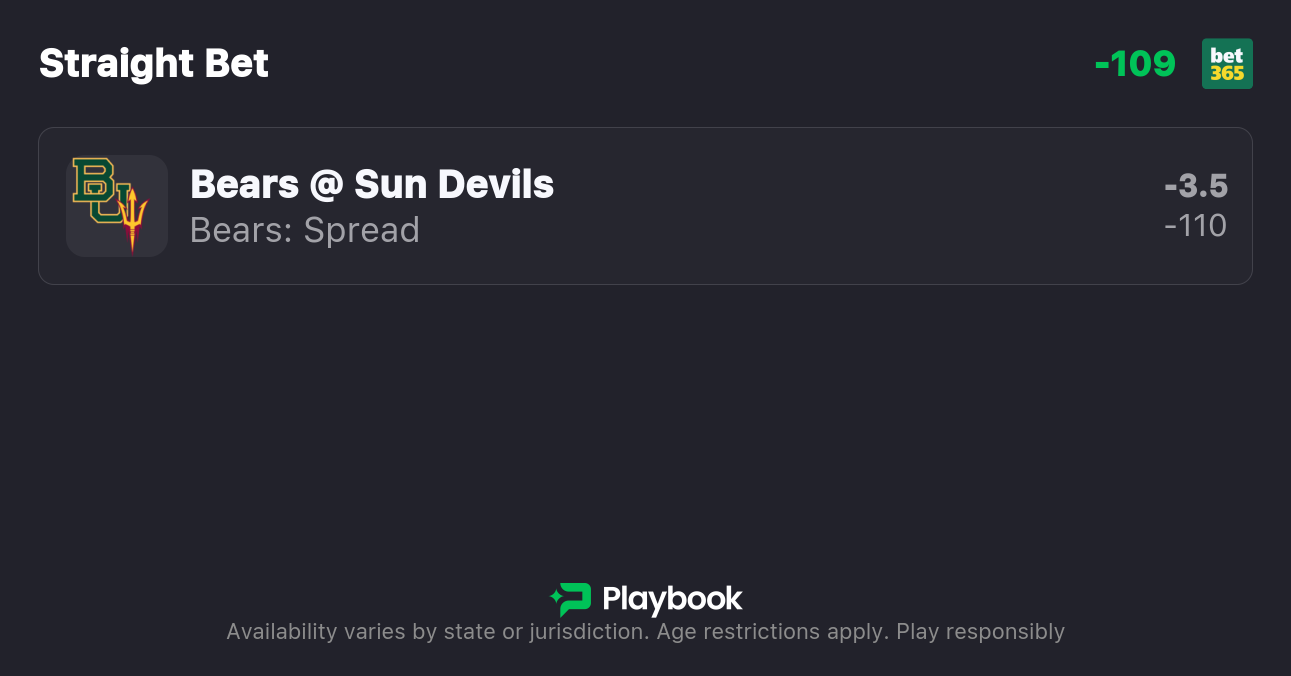 - Baylor vs Arizona State Spread: Baylor -3.5, Arizona State +3.5