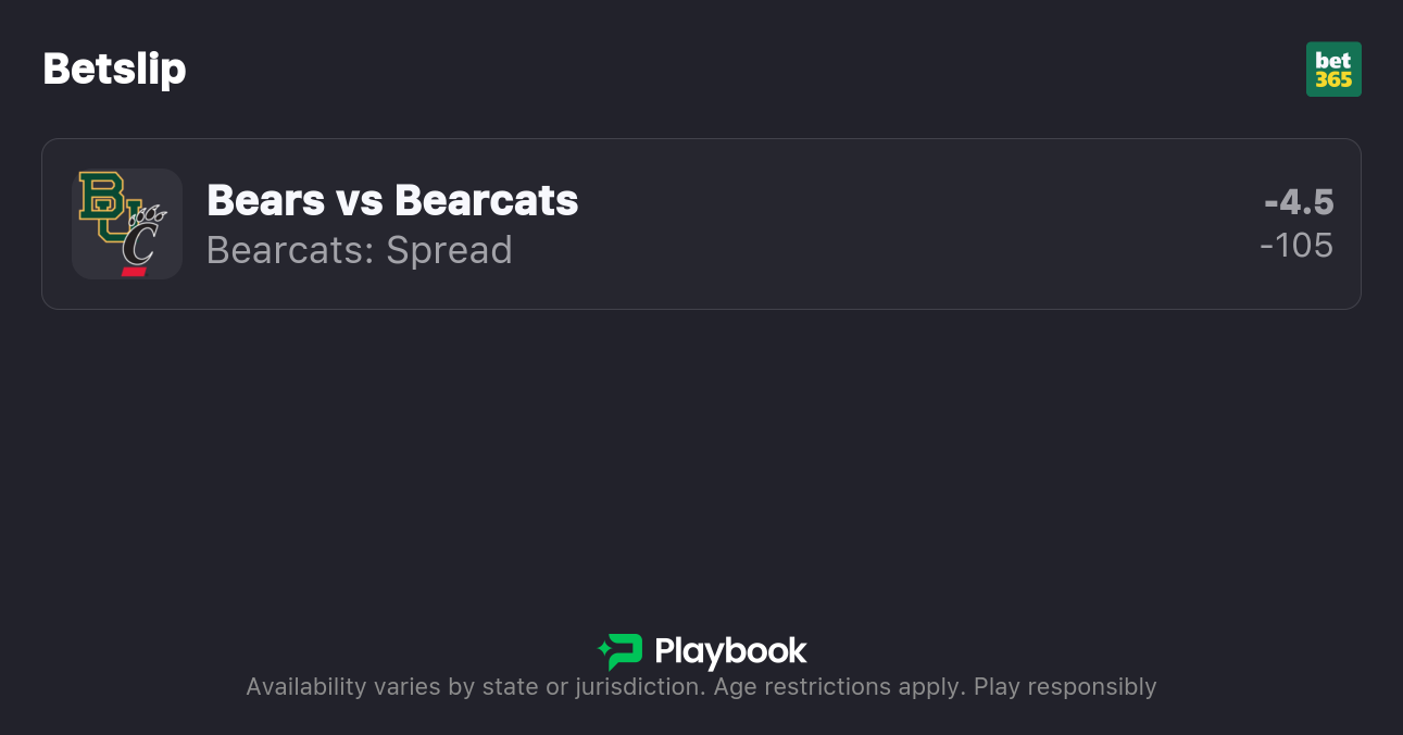 - Baylor vs Cincinnati spread: Cincinnati -4.5