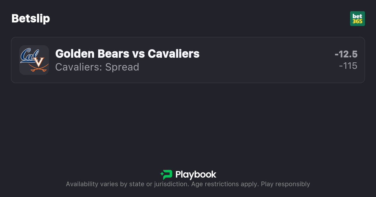 - Cal vs Virginia spread: Virginia -12.5