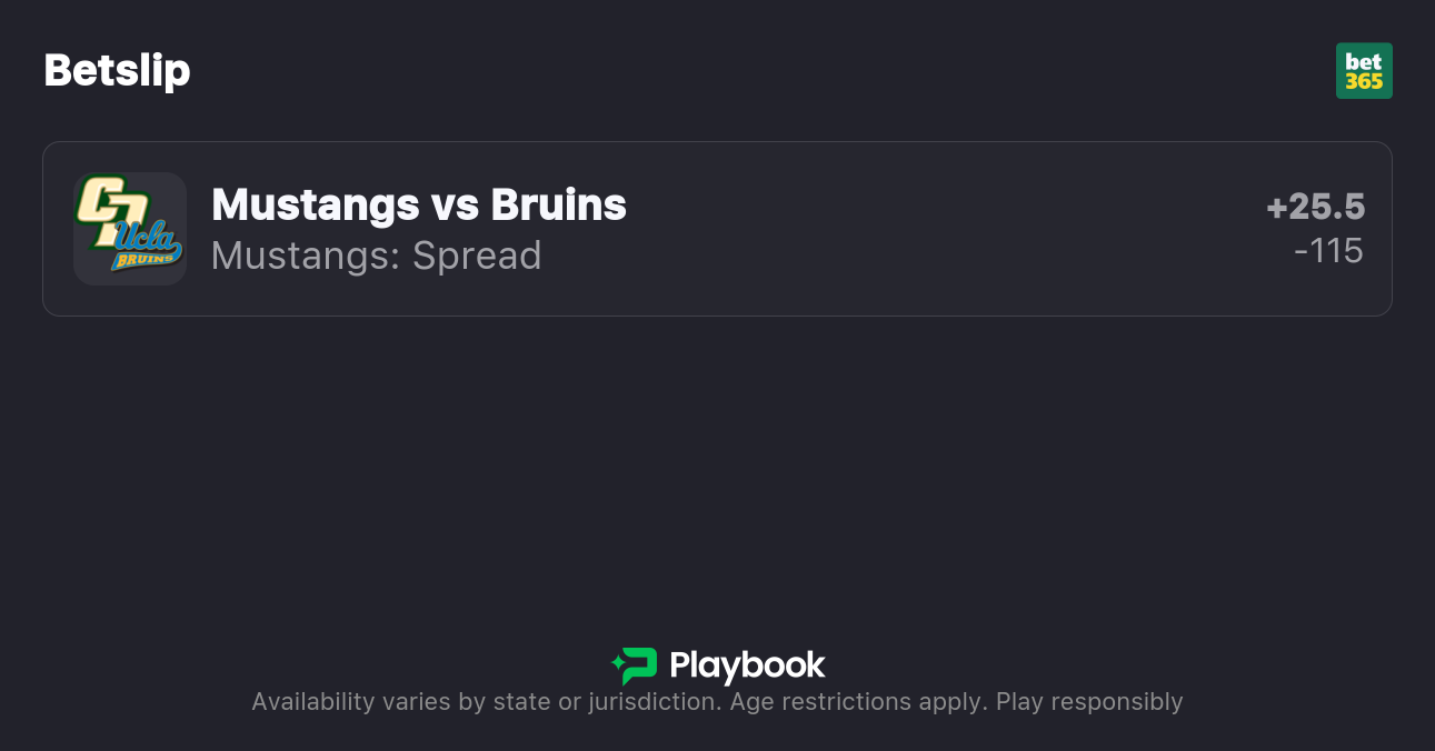 - Cal Poly vs UCLA spread: UCLA -25.5