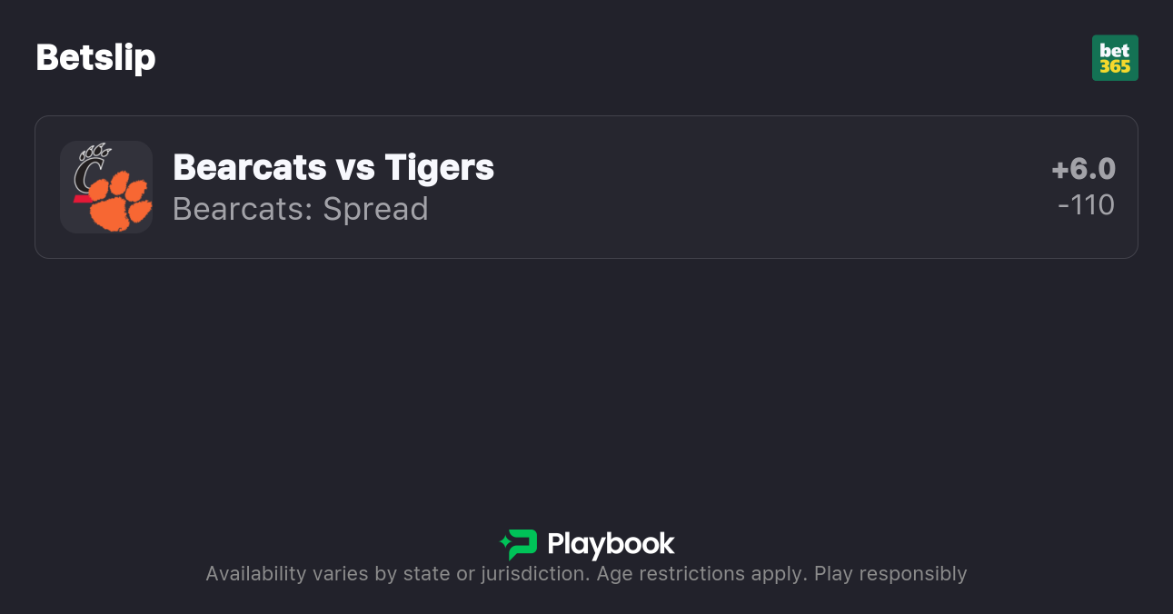 - Cincinnati vs Clemson moneyline: Cincinnati +190, Clemson -230