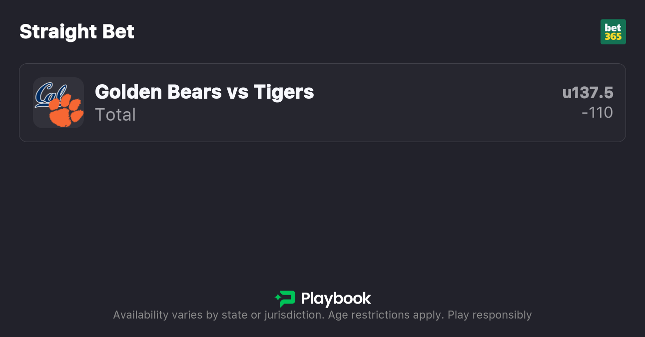 - Clemson vs Cal Over/Under: 137.5 Points
