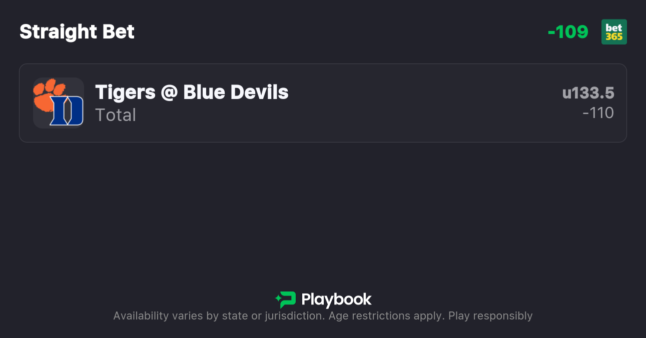 My Clemson vs Duke best bet is on both teams to go under the total. For all of your college basketball bets, be sure to find the best lines by using our live NCAAB odds page.