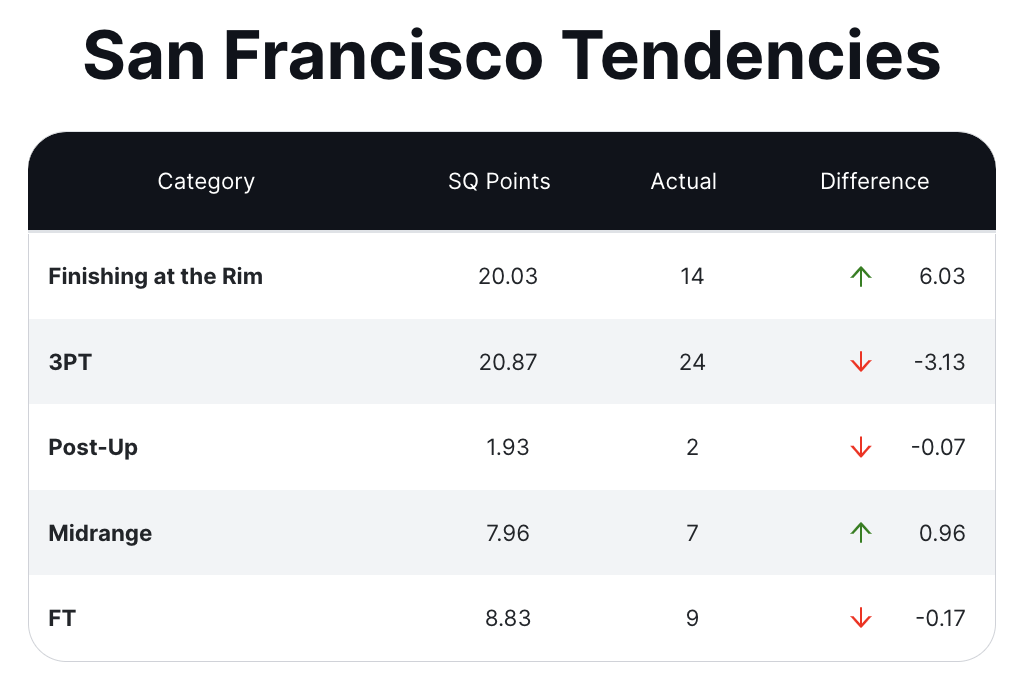 With that being said, in the previous meeting with San Francisco, they were very fortunate to only give up 14 points at the rim.