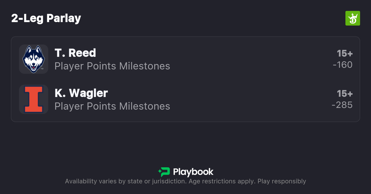 I expect UConn’s senior center to present an overwhelming defensive matchup for Brad Underwood’s forwards, given Reed’s physicality in the post.