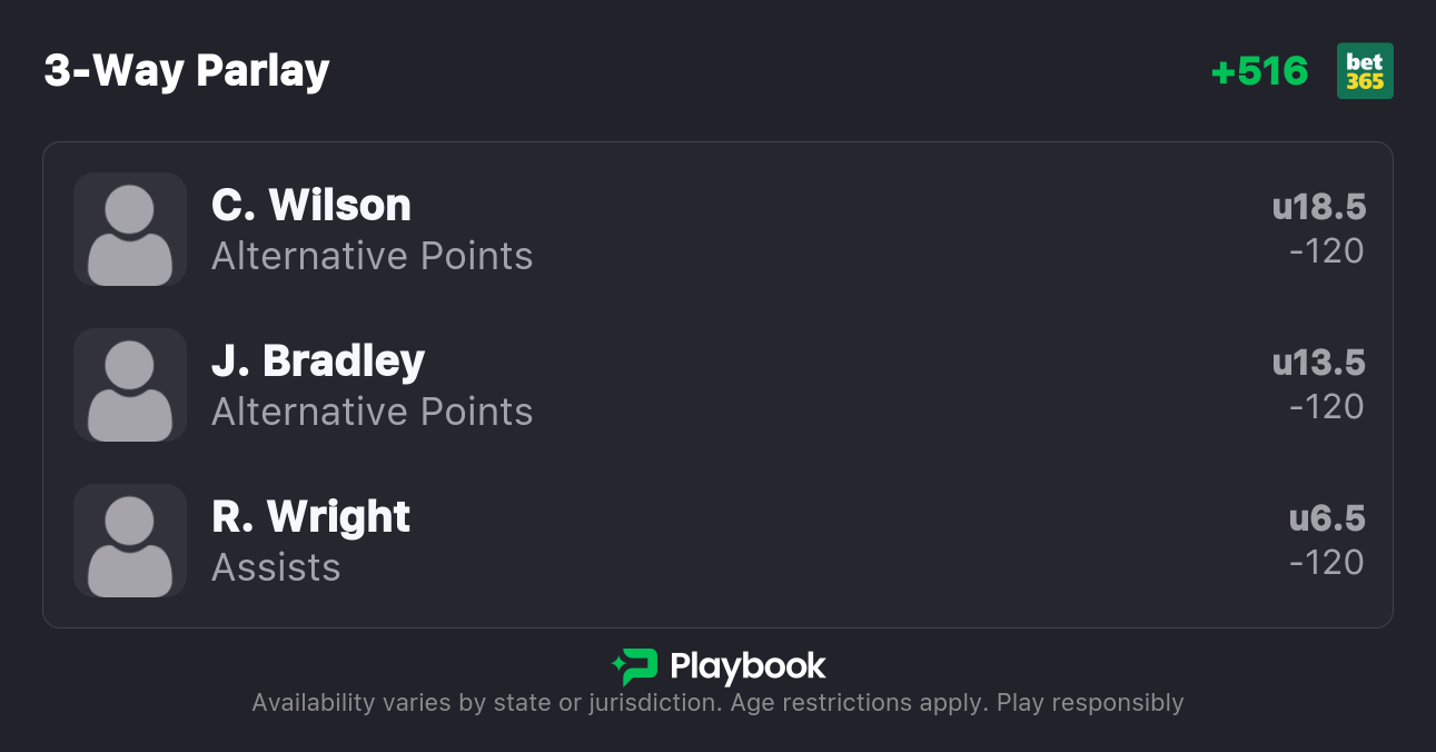 - Robert Wright Under 6.5 Assists (-120 · bet365)