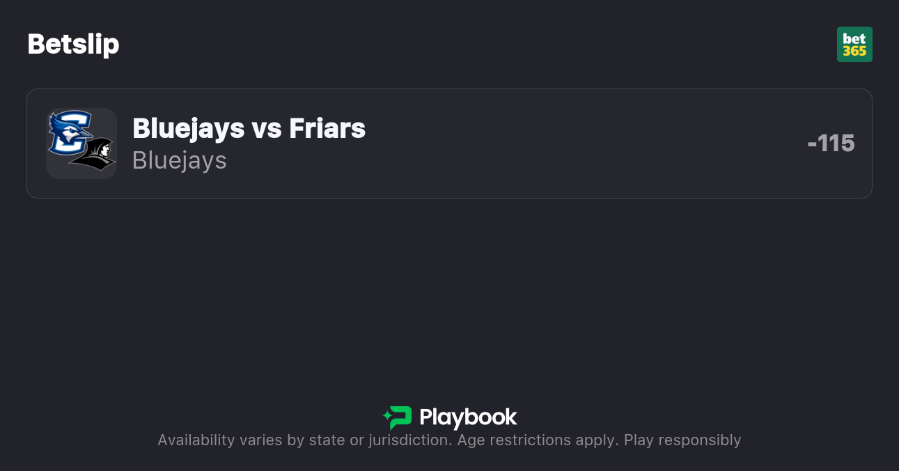 - Creighton vs Providence moneyline: Creighton -115, Providence -105