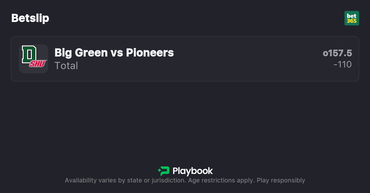 - Dartmouth vs Sacred Heart over/under: 157.5 points