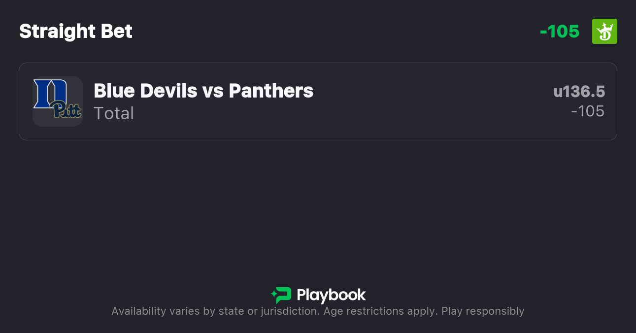 - Duke vs Pitt over/under: 136.5 points