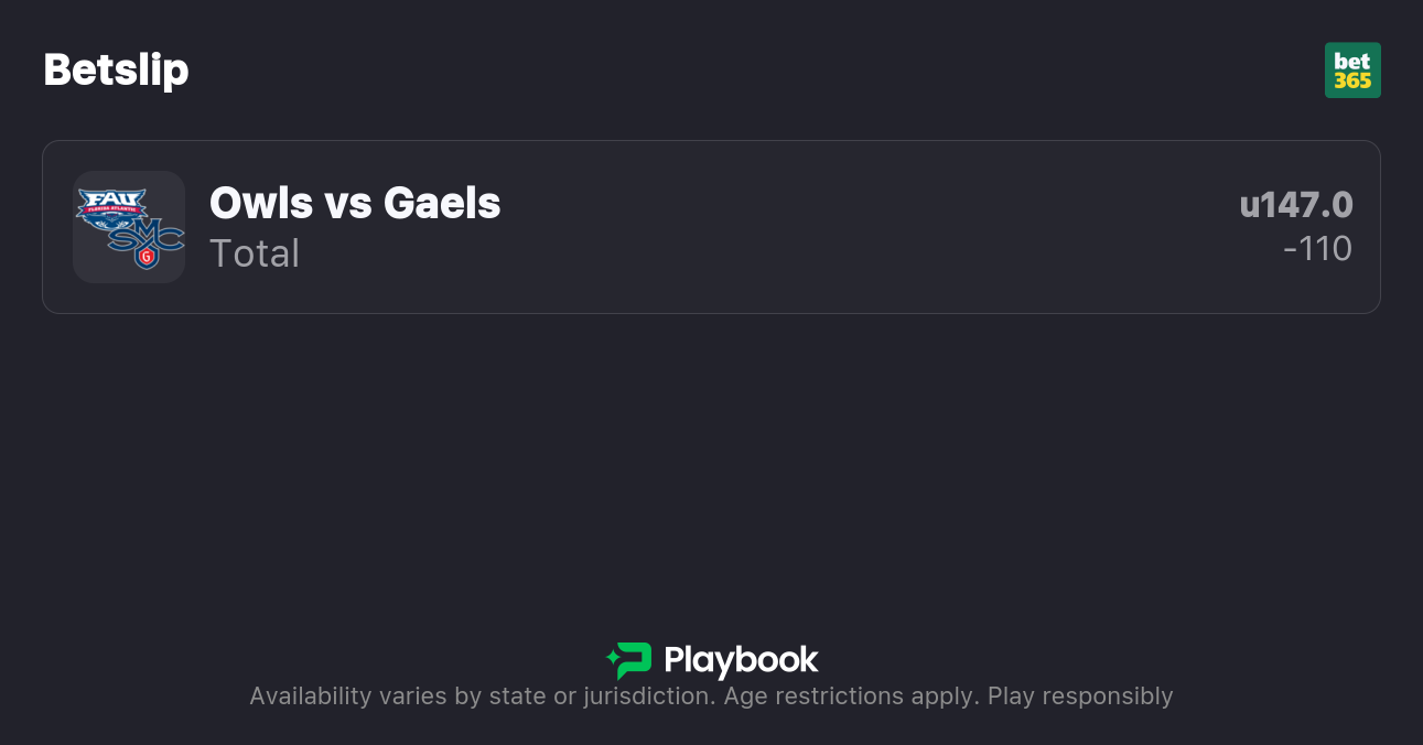 My FAU vs Saint Mary's best bet is on the under. For all of your college basketball bets, be sure to find the best lines by using our live NCAAB odds page.