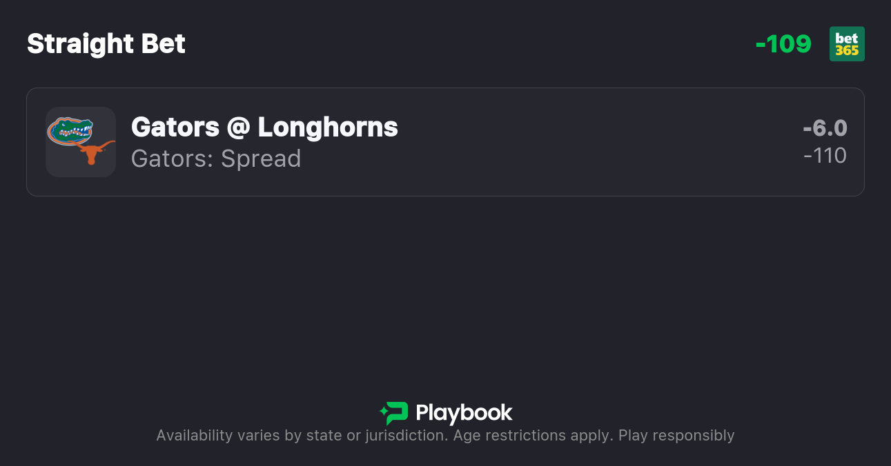 - Florida vs Texas spread: Florida -6
