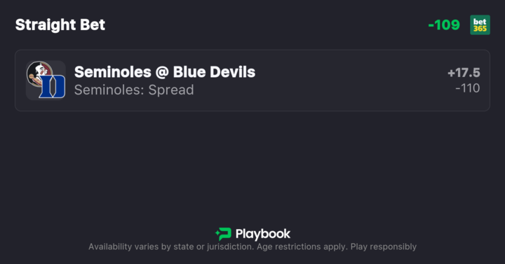 - Florida State vs Duke spread: Duke -17.5
