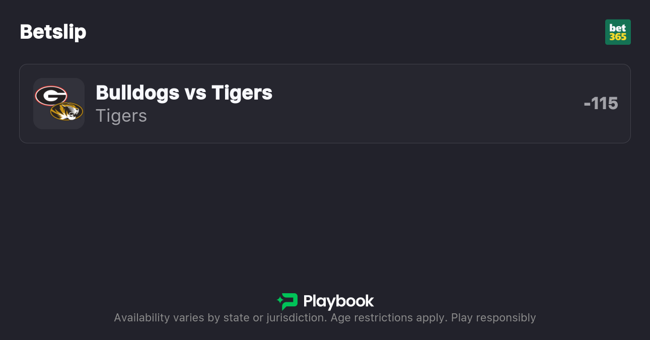 - Georgia vs Missouri moneyline: Georgia -105, Missouri -115