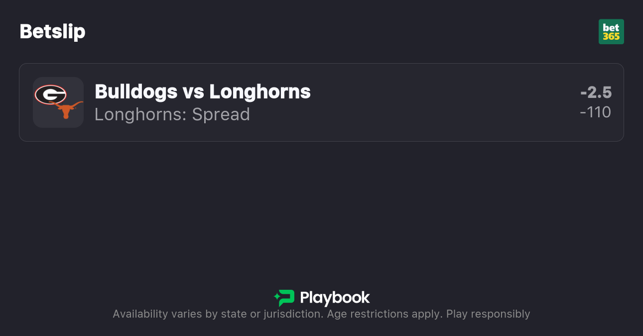 - Georgia vs Texas spread: Texas -2.5