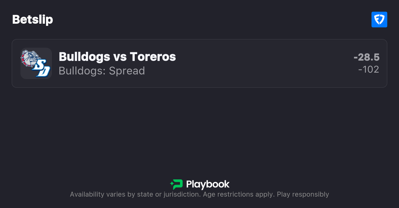 - Gonzaga vs San Diego spread: Gonzaga -28.5