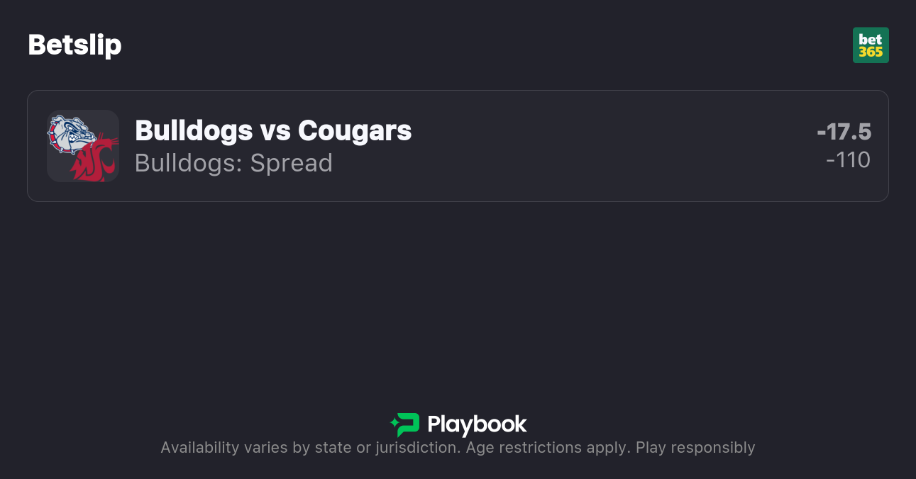 - Gonzaga vs Washington State spread: Gonzaga -17.5