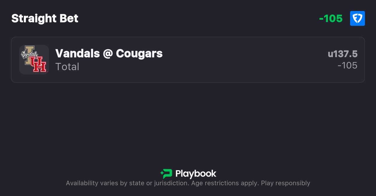 - Idaho vs Houston over/under: 137.5 points